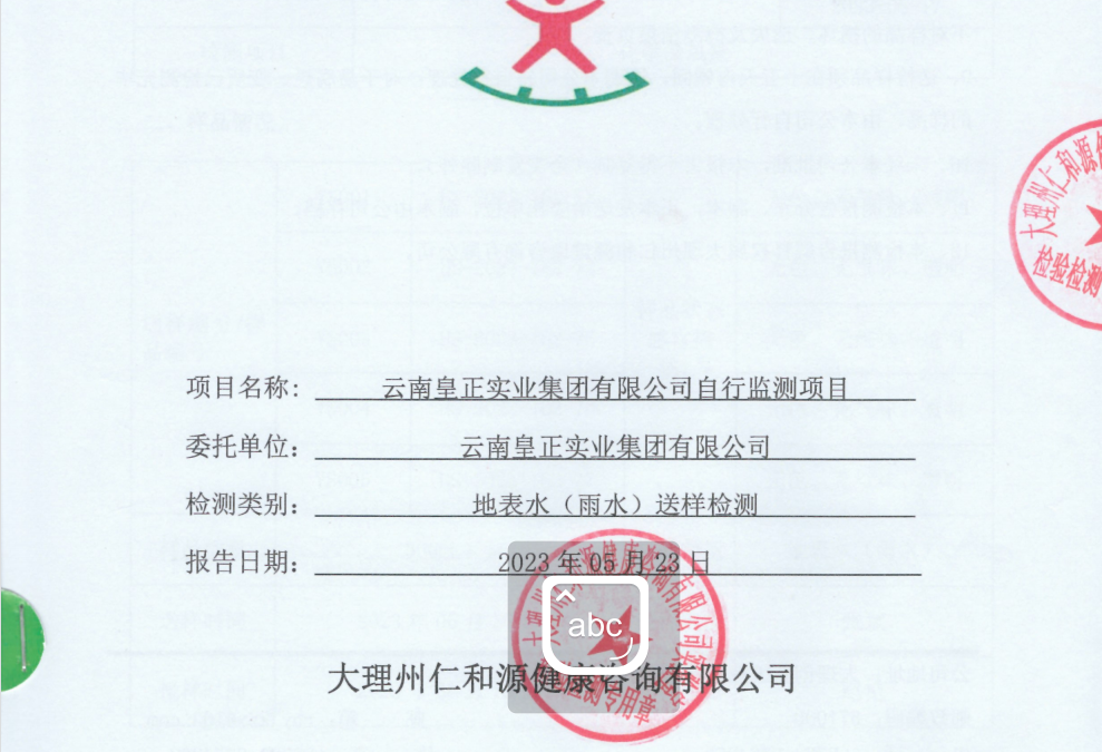 云南皇正實業集團有限公司 2022年10月自行監測報告
